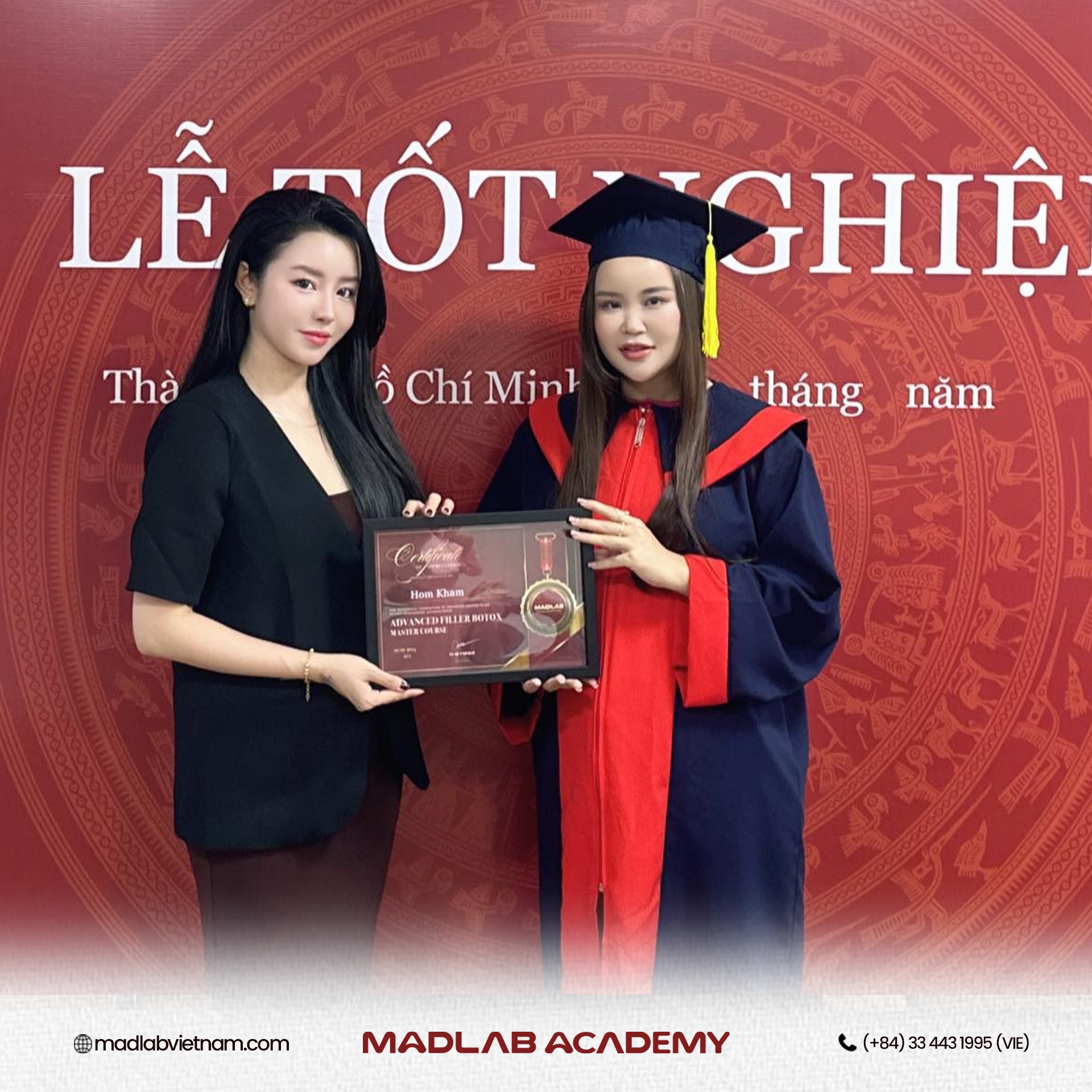 🎉 Chúc mừng bạn học viên đến từ Myanmar – Thailand đã tốt nghiệp khóa nâng cao 1–1 Filler & Botox trọn đời tại Madlab chỉ trong 7 ngày!