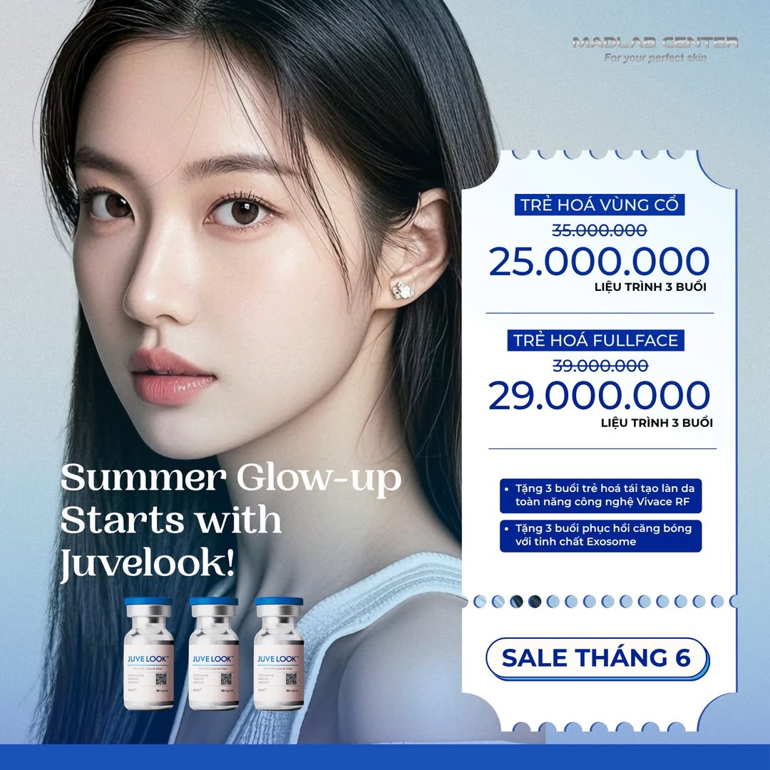Mùa hè là mùa để tỏa sáng ❤ Đừng để những dấu hiệu lão hóa trên gương mặt và vùng cổ làm bạn mất tự tin. MADLAB CENTER mang đến chương trình SALE THÁNG 6 với siêu phẩm trẻ hóa da từ Hàn Quốc – Juvelook.