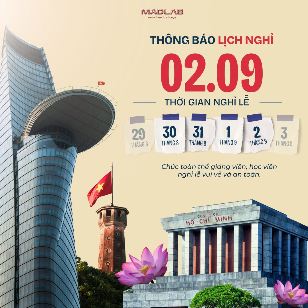 Trong thời gian nghỉ lễ, mọi thắc mắc của Quý học viên và Quý đối tác xin vui lòng để lại tin nhắn. Bộ phận CSKH của MADLAB sẽ phản hồi sớm nhất ngay khi quay trở lại làm việc.